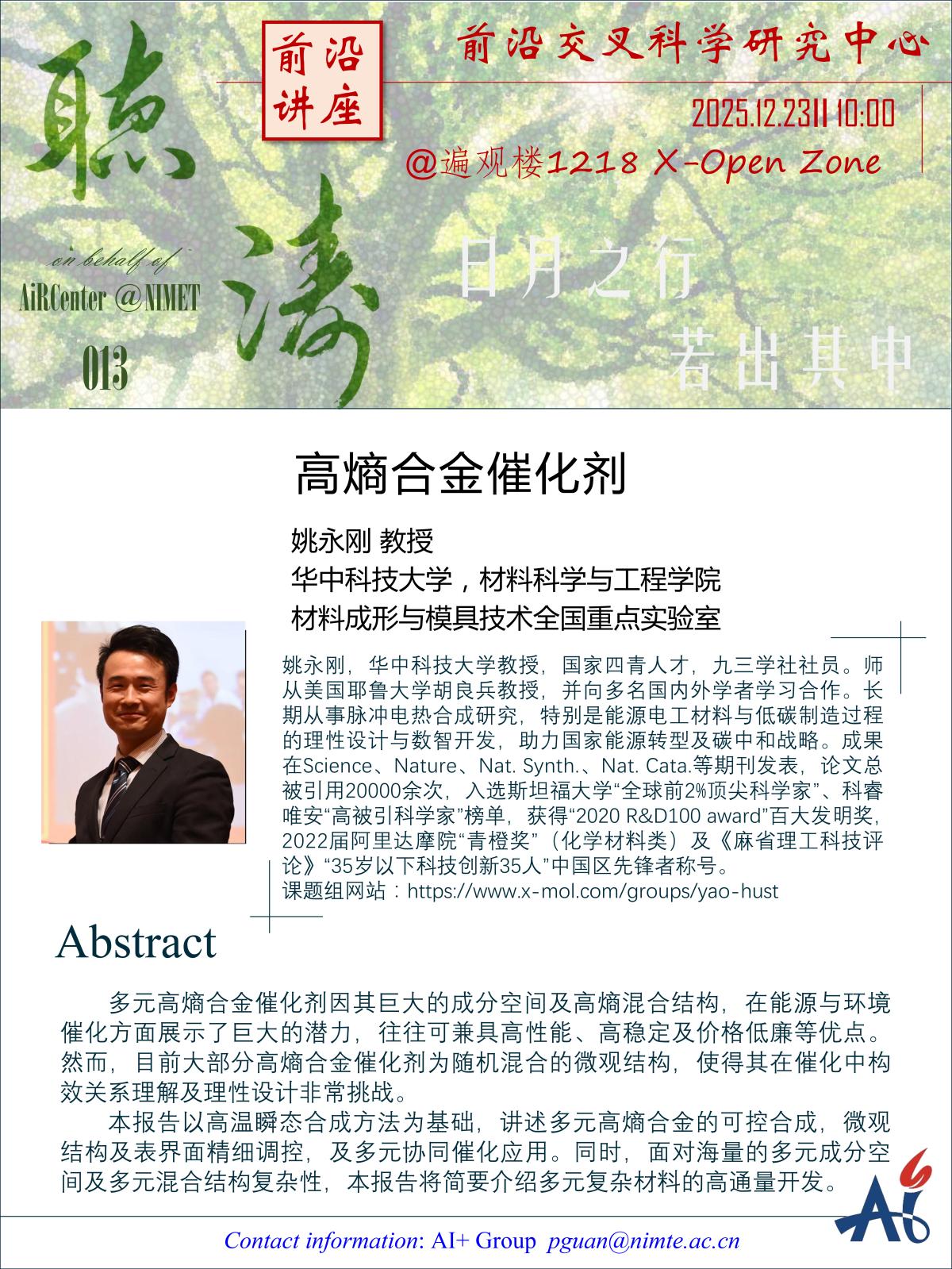 Academic Lecture || 姚永刚:高熵合金催化剂